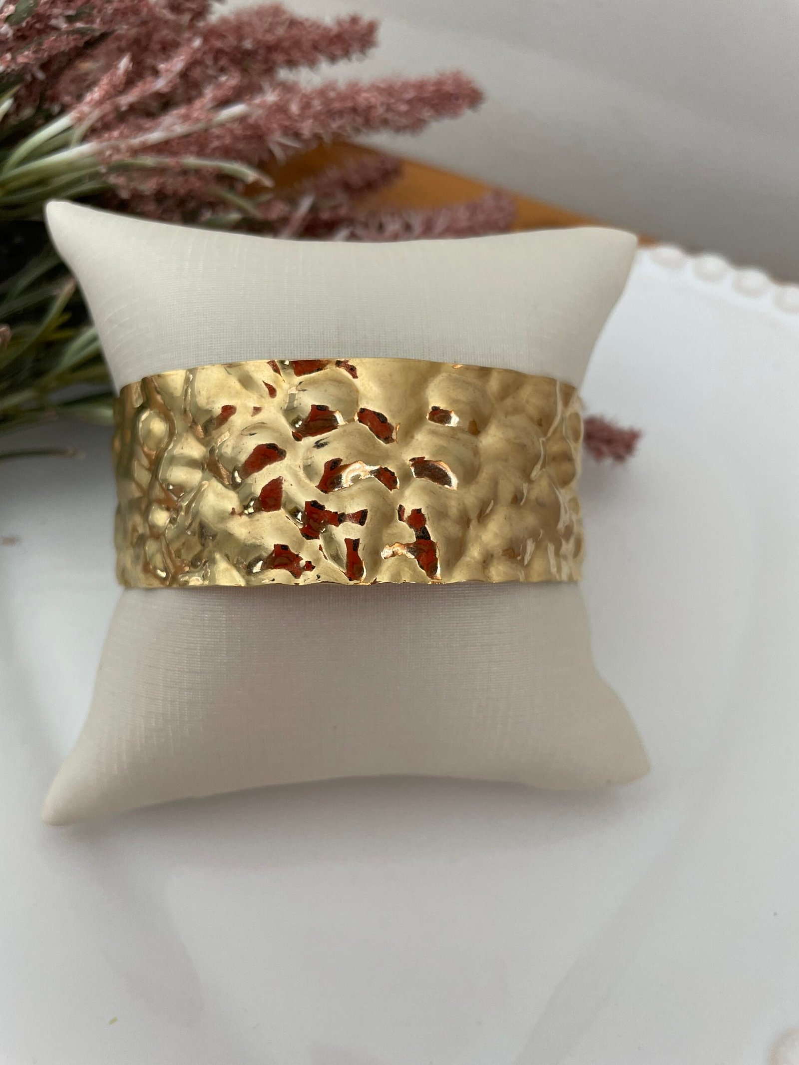 Bracelete com designer retangular, orgânico e ajustável que facilita o encaixe no braço.