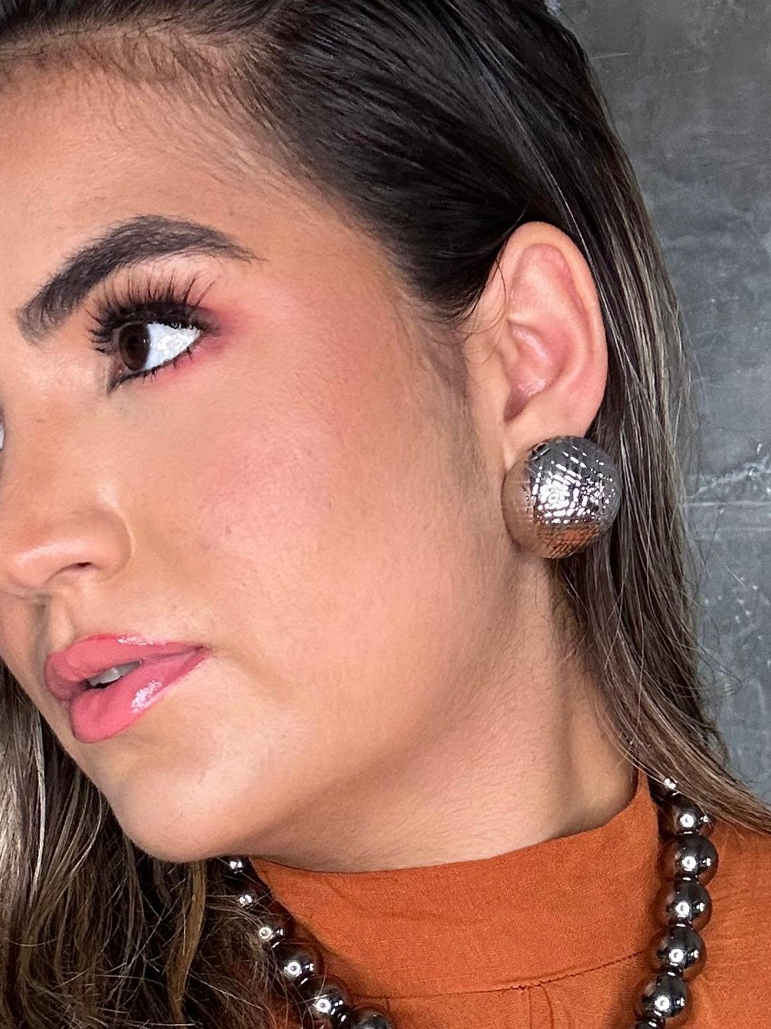 Também conhecidos como “ponteiras” os brincos meia esfera são muito usados por terem esse formato atemporal e elegante , perfeito para qualquer ocasião.
